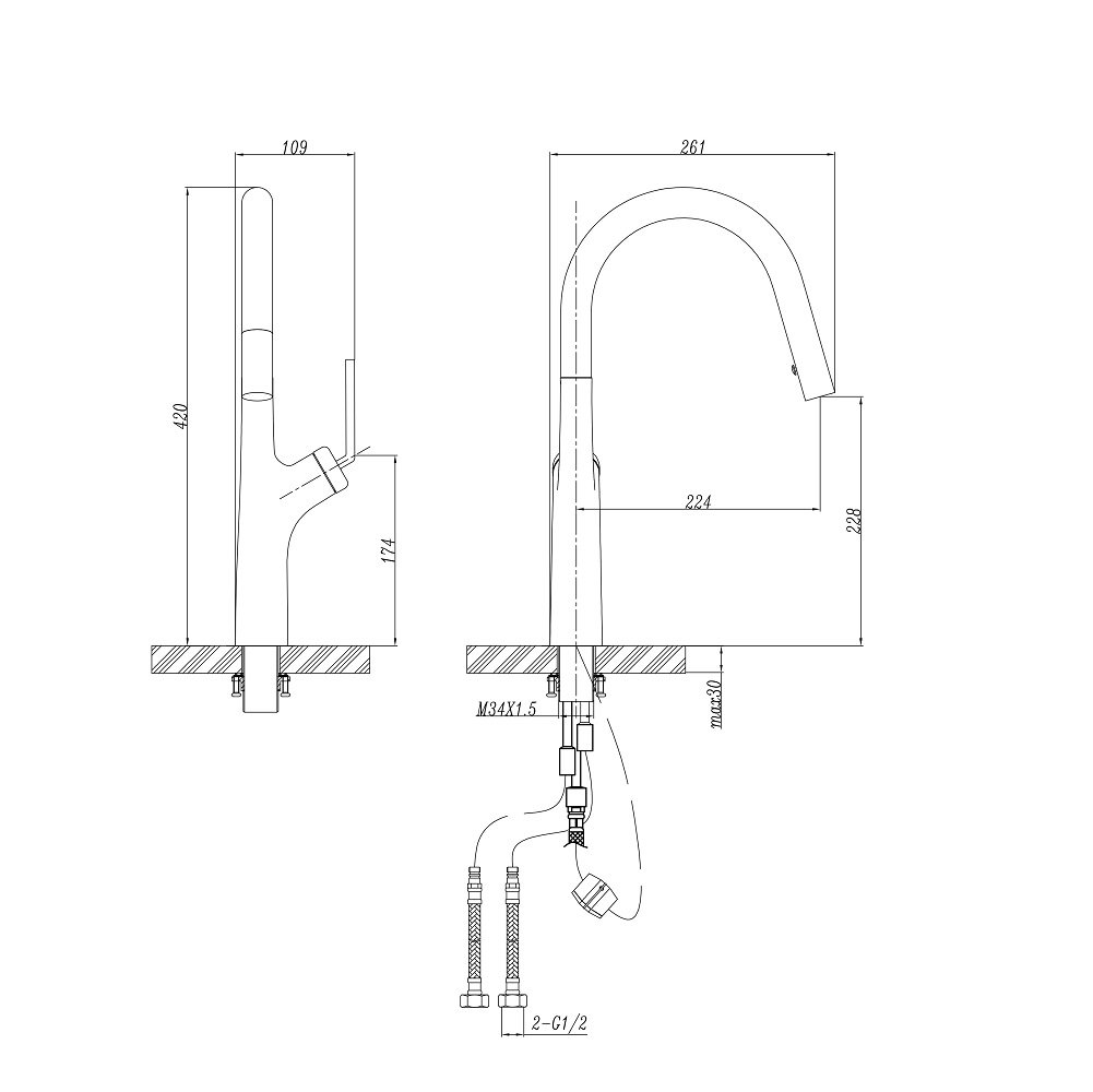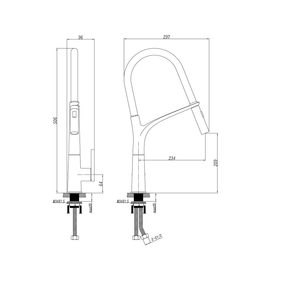 Tolo 1300 08 Pull- Out Kitchen Mixer Tap